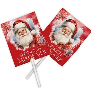 Lizaki na Mikołajki – zestaw 10 sztuk Szukasz drobnego, a jednocześnie efektownego prezentu na Mikołajki? Ten zestaw lizaków to idealne rozwiązanie! W komplecie znajdziesz 10 kolorowych lizaków zapakowanych w świąteczne kartoniki ozdobione grafiką Mikołaja i napisem „Słodkich Mikołajek”. To uroczy upominek, który sprawdzi się zarówno dla dzieci w szkole czy przedszkolu, jak i dla dorosłych, aby wprowadzić odrobinę radości i świątecznego klimatu. Opis produktu: zawartość: 10 owocowych lizaków w ozdobnych kartonikach z dwustronnym nadrukiem – gotowe do wręczenia ???? wygląd: kartoniki z grafiką Mikołaja w czerwonych odcieniach, życzenia „Słodkich Mikołajek” smaki: