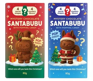 Opakowanie zawiera jeden losowo wybrany wariant smakowy spośród wskazanych na etykiecie: Czekolada mleczna z dodatkiem strzelających cukierków z nadzieniem o smaku karmelizowanych biszkoptów i ciastem kadayif. Czekolada mleczna z dodatkiem strzelających cukierków z nadzieniem o smaku orzechów laskowych i ciastem kadyif. Czekolada mleczna z dodatkiem strzelających cukierków z nadzieniem o smaku waniliowych lodów z chrupkami ryżowymi. Czekolada mleczna z dodatkiem strzelających cukierków z nadzieniem o smaku wiśniowym z chrupkami ryżowymi.