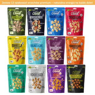 Zestaw 12 opakowań przekąsek orzechowych Mr. Cloud to idealny wybór dla osób, które cenią różnorodność, wysoką jakość i intensywny smak. Starannie skomponowa...