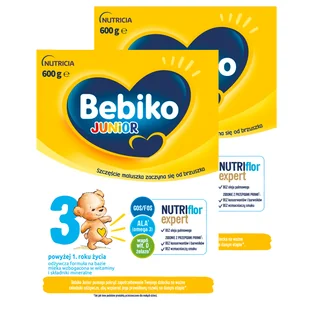 Zestaw Bebiko Junior 3 Nutriflor Expert, odżywcza formuła na bazie mleka, powyżej 1 roku, 2 x 600 g