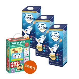Produkt Zestaw Bebilon Junior do picia, wzbogacona formuła na bazie mleka dla dzieci 2-6 lat, 3 x 1 l + CzuCzu, Zwierzątka Zabawy kreatywne z pisakiem zmazywakiem, od 3 roku życia gratis do kupienia w Gemini. 1. Bebilon ...