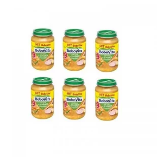 ZESTAW 6 x BoboVita Obiadek warzywa ze schabem i kluseczkami, 190g- po 9 miesiącu życia Produkt dla niemowląt i małych dzieci zawiera składniki skontrolowane pod kątem bezpieczeństwa dla niemowląt. Skład dostosowany do wieku. Zgodnie z przepisami prawa nie zawiera konserwantów, barwników i wzmacniaczy smaku. spełnia rygorystyczne normy jakościowe dla najmłodszych bez konserwantów, barwników i wzmacniaczy smaku z warzywami gotowanymi na parze zbilansowany skład odpowiedni do wieku bez dodatku soli mięso od sprawdzonych dostawców Warzywa 61% (pietruszka 40%, marchewka 9%, ziemniaki 7%, groszek 5%), woda użyta do przygotowania, schab 8%, gotowany makaron (mąka pszenna, białko jaja kurzego) 6%, skrobia kukurydziana, olej.
