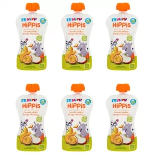 Mus owocowy Gruszki-Jabłka-Mango-Marakuja po 6. miesiącu zestaw 6 x 100 g Idealny na deser lub jako dodatek do kaszki. BIO &ndash jakość, za którą ręczę &ndash Claus Hipp. 100% owoców Bio bez dodatku cukru &ndash zawiera naturalnie występujące cukry bez słodzących koncentratów soków
