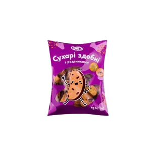 Suchary cukiernicze z rodzynkami TM "BKK" 250g Masa netto : 250 g. Składniki: mąka pszenna, woda, cukier, suszone winogrona (rodzynki) 10,3%, tłuszcz roślinny „Shortening cukiernicze” (rafinowany, dezodoryzowany olej palmowy, emulgator E471, przeciwutleniacz E306), drożdże piekarskie prasowane, sól, proszek do pieczenia (wodorowęglan amonu), wanilina. Produkt może zawierać śladowe ilości jaj, produktów mlecznych, oleju musztardowego, sezamu. Wartość odżywcza na 100 g produktu: wartość energetyczna – 1775 kJ / 419 kcal, tłuszcze – 5,3 g, w tym kwasy tłuszczowe nasycone – 2,04 g, węglowodany – 83,6 g, w tym cukru – 27,18 g, białko – 9,3 g, sól – 0,85 g.
