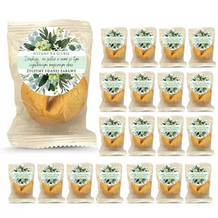 Zestaw ciasteczek z wróżbą z naklejką okrągłą "Witamy na ślubie 3" 40 sztuk