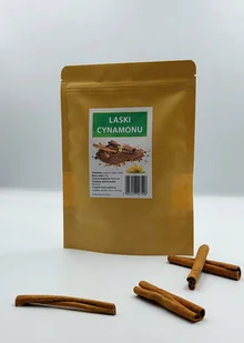 Cynamon w laskach 50g Przyprawy tej używa się do wypieków, napojów, deserów oraz dań wytrawnych i mięsnych. Cynamon stosowano na rozmaite dolegliwości – od biegunek, przez reumatyzm, po problemy menstruacyjne kobiet. W kuchni: • Cynamon jest stosowany do przyprawiania potraw z ryżu, pieczonych jabłek i wina • Małe ilości cynamonu dodaje się do aromatyzowania ryb, mięs, gulaszu i baraniny, a także kompotów, deserów i ciast • Cynamonem przyprawia się kompoty, soki owocowe oraz grzane wina • Cynamon stosuje się w powszechnie w kuchni indyjskiej i chińskiej Znakomicie sprawdza się w przypadku dań mięsnych i pikantnych. Jest rewelacyjnym dodatkiem do potraw na słodko np. szarlotek, musów czy kremów.