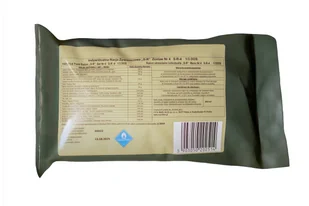 Oryginalna wojskowa indywidualna racja żywnościowa S-R-4 W zestawie: - danie główne: gulasz węgierski 300 g - mielonka wieprzowa 100 g - suchary SU-1 90 g - ...