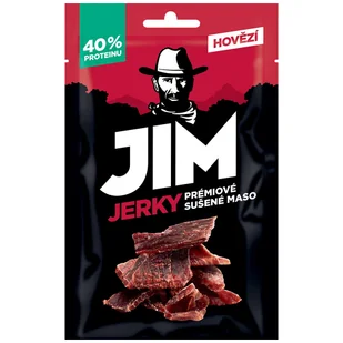 Mięso suszone - Jerky wołowe 23 g od firmy Jim Jerky jest pełne delikatnie wędzonego smaku, soczyste i delikatne w teksturze. Świetne źródło białka spakowane na wyjazdy! Jim Jerky wołowe 23 g to delikatnie wędzone suszone mięso w jakości premium. Pełne smaku i delikatne w teksturze. To idealne trwałe jedzenie odpowiednie na kemping, wędrówki i przygody na świeżym powietrzu. Stanowi doskonałe źródło białka w podróży, gdzie niezawodnie Cię nasyci.