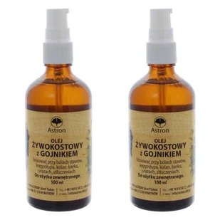 OLEJ ŻYWOKOSTOWY Z GOJNIKIEM Do użytku zewnętrznego. Smarować miejscowo. Środek do pielęgnacji skóry. Zawartość netto: 2 x 100 ml Sposób użycia: Wcierać w ob...