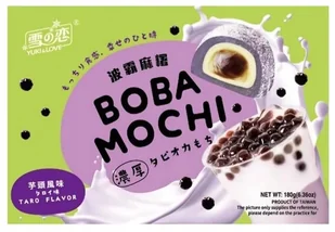 E129, E133. Produkcja: Tajwan Informacje dodatkowe: Ten produkt może zawierać śladowe ilości zboża zawierające gluten, orzeszki ziem Opis: Ciastka Ciasteczka Ryżowe Galaretki BOBA MOCHI z Nadzieniem TARO w opakowaniu o pojemności 180 g firmy Yuki & Love. To wyjątkowa wersja popularnej japońskiej przekąski, przygotowanej z mąki ryżowej (kleistej), wzbogaconej o charakterystyczne kuleczki BOBA oraz kremowe nadzienie o smaku taro.