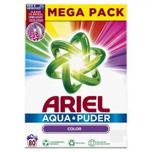 Zawiera unikalną technologię, która zapobiega przywieraniu resztek proszku do tkanin. Dzięki innowacyjnej kompozycji AquaPuder szybko rozpuszcza się w kontakcie z wodą.