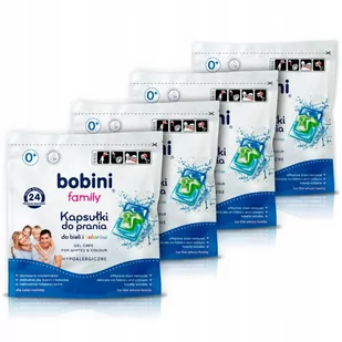 Bobini Family Kapsułki do Prania Koloru Bieli 24szt x4 Zalety produktu: Hypoalergiczne i delikatne Od pierwszych dni życia Wegańska formuła Do prania białego i kolorowego Przebadane dermatologicznie Bez alergenów i fosforanów Dbają o delikatne włókna oraz wygładzają je przy regularnym stosowaniu Kompleks 7 enzymów efektywnie usuwa zabrudzenia – już od pierwszych plam Rekomendowane do prania odzieży osób o skórze wrażliwej i skłonnej do alergii Zaawansowana 3-komorowa kapsułka Delikatna kompozycja zapachowa