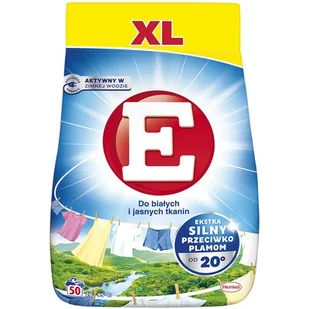 Proszek do prania marki E Do białych i jasnych tkanin działa skutecznie przeciwko wszelkim plamom i zapewnia wysoką wydajność prania. Wnika głęboko w włókna tkaniny, dzięki swojej unikalnej formule i pomaga usunąć nawet bardzo uporczywe plamy.