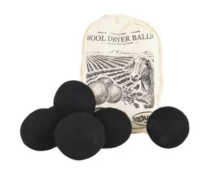 SMART WASH Kule z Wełny do Suszarek 6 szt CZARNE Kule wełniane SMART przeznaczone są do przyspieszania procesu suszenia, który to sprawia, że pranie staje się bardziej miękkie i mniej wygniecione. Kule należy umieścić w suszarce razem, po zakończeniu zostawić kule do wyschnięcia. Kule zostały wykonane ręcznie. Obracając się w suszarce tworzą kieszenie powietrza pomiędzy tkaninami wzmacniając cyrkulację wysokiej temperatury . Kule można nasączyć olejkami eterycznymi by cieszyć się swoim ulubionym zapachem.