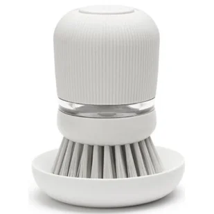 Dzięki tej szczoteczce z dozownikiem do mydła zmywanie naczyń jest łatwe i przyjemne! Naciśnij przycisk, aby uwolnić odpowiednią ilość płynu do mycia naczyń. Trwałe, nylonowe włosie jest wystarczająco mocne, aby szorować, ale wystarczająco miękkie, aby nie rysować powierzchni. Produkt posiada wygodny uchwyt, zbiornik płynu do mycia naczyń, ergonomiczną szczotkę oraz antypoślizgowy uchwyt, ułatwiający pracę nawet gdy jest mokry. Dzięki dużemu otworowi, napełnianie płynem jest wygodniejsze, z podstawka zabezpiecza blat przed namoknięciem. Posiada 5-letnią gwarancję.