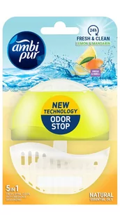 Zawieszka Ambi Pur Cytryna-Limonka Ambi Pur lemon & mandarin odświeża toaletę, zapewniając czystość oraz przyjemny, świeży zapach cytryny i mandarynki. Ambi Pur za każdym razem dozuje taką samą ilość zapachowego płynu, sprawiając, że Twoja toaleta jest świeża i pachnąca od pierwszego do ostatniego użycia. Zawiera skoncentrowany płynny środek czyszczący, który pomaga zapobiegać osadzaniu się kamienia. Pozostawia toaletę świeżą, błyszczącą, czystą i pachnącą. Ambi Pur jest łatwy i higieniczny w użyciu, ma bakteriobójcze działanie oraz długotrwały, orzeźwiający aromat.