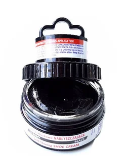 Czarna pasta do butów, woskowa, samo nabłyszczająca, Shoe Cream, Palc, 50 ml z aplikatorem do nakładania. Pasta, krem z woskiem pszczelim z aplikatorem w postaci gąbki w zestawie. Pasta 2 w 1 hiszpańskiej marki Palc. Krem koloryzujący w słoiczku przeznaczony do wszystkich skór naturalnych, licowych, gładkich. Pasta silnie kryje, pokrywa przebarwienia skóry i odżywia jej kolor.