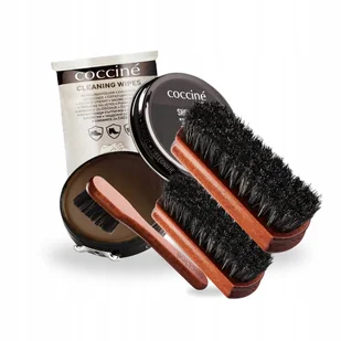 Do Pastowania i Polerowania Brązowych Butów Coccine Zestaw 5w1 W skład zestawu wchodzi: COCCINE SHOE WAX PASTA BRĄZOWA 40 ml CHUSTECZKI CZYSZCZĄCE DO BUTÓW W...