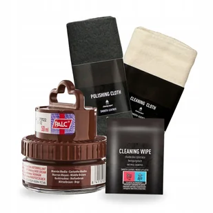 Pasta do Butów Średni Brąz Chusteczka i Szmatki do Skóry Palc Zestaw 4w1 W skład zestawu wchodzi: PALC PASTA W KREMIE 2W1 Z APLIKATOREM 50ML ŚREDNI BRĄZ CLEA...