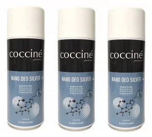 Zestaw 3x coccine dezodorant nano deo silver 400 ml Dezodorant odświeżający do obuwia. Dzięki zawartym w preparacie nano cząsteczką srebra i krzemionki, dezodorant jest bardzo skuteczny. Preparat świetnie sprawdza się do obuwia roboczego, sportowego oraz casualowego. Kolor: bezbarwny Pojemność: 400 ml Funkcje: