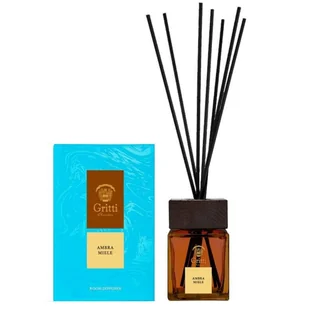 Wyrafinowana kompozycja zapachowa, w której aksamitne nuty dzikiego miodu i złocistego bursztynu stapiają się w zmysłową całość. Otulona miękką chmurą benzoesu i przełamana ciepłem szlachetnych przypraw, tworzy atmosferę głębi, komfortu i ponadczasowej elegancji. • Eleganckie dyfuzory z trzciny roztaczają w pomieszczeniu unikalny klimat Gritti — między cierpką świeżością włoskiego lata a słodyczą śródziemnomorskiego zmierzchu. • Dostępne w formatach 250 ml i 500 ml — idealne zarówno do niewielkich przestrzeni, jak i przestronnych wnętrz. • Jedwabiste trzciny równomiernie uwalniają zapach, delikatnie otulając otoczenie wyrafinowanym aromatem.