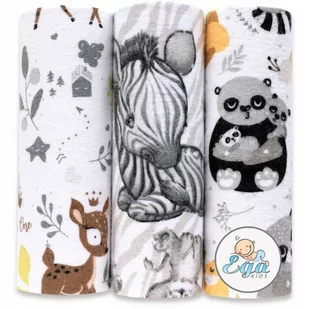 pieluszek drukowanych z flaneli z motywem zwierzęcym. Pieluszki wykonane są w 100% z bawełny najwyższej jakości. Pieluszki cechuje niebywała chłonność, miękkość i delikatność. Są one multifunkcjonalnymi przyborami, niezbędnymi w opiece nad maluchami. Informacje 3 szt.