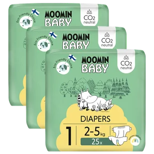 Moomin Baby, pieluchy, rozmiar 1, 2-5 kg, 75 sztuk