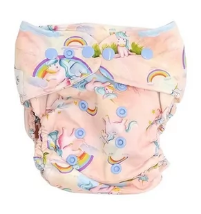 nieprzemakalnego PULu i niebielonej bawełny. PUL to miękka, wodoszczelna dzianina. Jest laminowana od wewnątrz i kolorowa na zewnątrz. Bawełna jest niebielona, rozciągliwa (co ułatwia umieszczenie wkładu wewnątrz), delikatna dla skóry Wszystkie materiały pochodzą z Polski. PRANIE Temperatura prania: