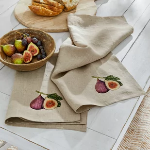 Przydatne dodatki nie odgrywają już tylko drugorzędnej roli w aranżacji wnętrz. Ten zestaw ściereczek do naczyń pięknie to udowadnia. Ozdobione naturalistycznym nadrukiem fig, wspaniale komponują się ze stylem rustykalnym i sprawiają, że codzienność staje się nieco bardziej stylowa i urozmaicona. Tkanina wykonana z czystego lnu ma pełną charakteru strukturę i jest niezwykle wytrzymała oraz trwała. Niestrzępiące się ściereczki są również idealne do polerowania cennych kieliszków lub sztućców.
