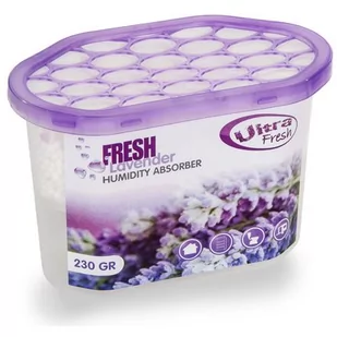 Pochłaniacz wilgoci ULTRA FRESH Lavender idealnie sprawdzi się w osuszaniu niewielkich przestrzeni takich jak pomieszczenia mieszkalne, łazienka, przyczepa kempingowa czy wnętrze samochodu. Zestaw zawiera wkład 230 gram oraz pochłaniacz o pojemności około 500 ml. Pochłaniacz charakteryzuje się lawendowym wkładem zapachowym.