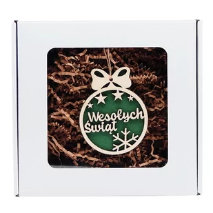 Pudełko Wypełniacz Bombka Wesołych Świąt Zielona Piękny zestaw prezentowy z ozdobą Bożonarodzeniową to niepowtarzalne gotowe rozwiązanie dla Twojego prezentu. Eleganckie i szykowne. Tak zapakowany prezent ucieszy każdego. Dodatkowym atutem jest późniejsza możliwość wykorzystania pudełka do przechowywania drobiazgów. Ekologiczne rozwiązanie - opakowanie prezentowe nie trafi do kosza.