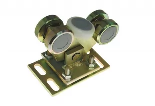 Wózek wahliwy 5 rolkowy, przeznaczony do konstrukcji bram samonośnych, o profilu 80x80x5mm. Rolki stalowe, łożyskowane. Dodatkowo każda rolka posiada dodatkową pokrywkę, pod którą znajduje się smar zapewniający niezawodne działanie w najtrudniejszych warunkach atmosferycznych. Pokrywka zabezpiecza również przed dostaniem się piasku i innych niepożądanych zabrudzeń. Wózek posiada możliwość regulacji wysokości w zakresie 20mm (wysokość minimalna90mm, maksymalna 110mm).