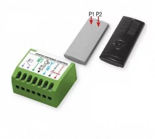 przycisk pilota otwiera bramę (sterownik nr1) i włącza światło podjazdu (sterowniknr2). Oba zdarzenia są potwierdzane buzerem i diodą LED pilota. Skład zestawu: radioodbiornik pilot Out Distance T4 czarny/ biały (1 sztuka)