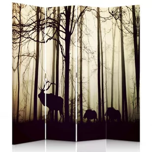 Parawan dwustronny obrotowy FEEBY, Jeleń w Lesie Mgła brązowy 145x170