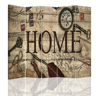 Parawan dwustronny obrotowy FEEBY, Napis Home Retro Brązowy 180x170