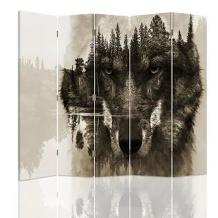 Parawan dwustronny obrotowy FEEBY, Wilk na tle lasu - brązowy 180x170