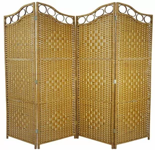 Ten wspaniały parawan będzie oryginalną ozdobą, która wprowadzi do Państwa wnętrza orientalny akcent i sprawi, że salon czy sypialnia nabiorą nietuzinkowego wyglądu i blasku. Można wykorzystać go do stworzenia domowej przebieralni lub oddzielić część jadalną od wypoczynkowej w salonie. Parawan wykonany z taśmy wiklinowej (mieszanka wikliny i trawy morskiej) plecionej na drewnianym stelażu (drewno naturalne niemalowane). Parawan składa się z czterech części połączonych ze sobą zawiasami. Parawany znajdą również zastosowanie w restauracji czy kawiarni, gdzie pozwolą gościom na zachowanie prywatności.