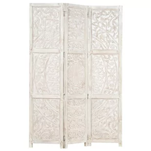 Materiał: MDF i lite drewno mango o bielonym wykończeniu Wymiary: 120x165 cm (szer. x wys.) Z ręcznie rzeźbionymi wzorami