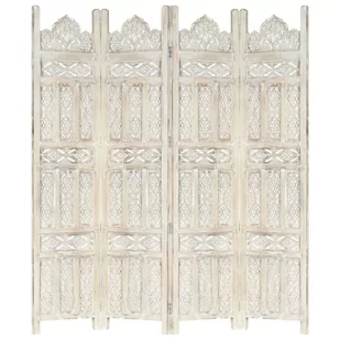 Będzie to idealny dodatek do sypialni, gdzie utworzy oddzielną, prywatną przestrzeń do przebierania się lub pozwoli wydzielić część pomieszczenia. Dodatkowo parawan ten charakteryzuje się solidną konstrukcją i jest ręcznie rzeźbiony w piękne wzory, co zwiększa jego klasyczne piękno. Można go również łatwo złożyć, aby zaoszczędzić miejsce, gdy nie jest używany. Składany parawan jest łatwy w montażu. Materiał: MDF i lite drewno mango o bielonym wykończeniu Wymiary: