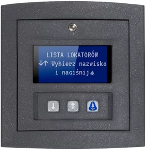 Elektroniczna lista lokatorów OP-EL lista elektroniczna z dużym, podgrzewanym wyświetlaczem graficznym LCD możliwość dołączenia z dowolnej strony kasety szybka synchronizacja danych lokatorów z panelem zasilanie AC 12-15V łącznik w zestawie obudowa w kolorze grafitowym wymiary obudowy: 124x127,5x41mm wymiary części podtynkowej: 102x100x30mm ilość: 1 szt. Od wersji v3 do zastosowania wyłącznie z panelami Master i Slave w wersji v3