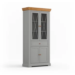 Całość została pokryta wodną farbą o kryciu na poziomie 90%, co stanowi ogromną zaletę. Taki wykończenie pozwala drewnu oddychać, a także jest ekologicznym rozwiązaniem, ponieważ takie cenimy sobie najbardziej. Drewniane uchwyty i delikatne przeszklenia sprawiają, że całość jest spójna i dopracowana w każdym detalu. A cichy domyk? To ta różnica, którą poczujesz na co dzień – nic nie trzaska, nic nie skrzypi, po prostu działa tak, jak powinno. Popielata witryna sosnowa – piękno i funkcjonalność w jednym meblu Każdy mebel powinien robić coś więcej, niż tylko dobrze wyglądać – proponowana witryna sosnowa z kolekcji Marone Elite jest tego doskonałym przykładem.