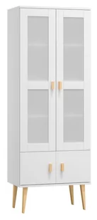 Stylowa i pojemna witryna Venuci z podwójnymi drzwiczkami stanowi ciekawą alternatywę dla tradycyjnych mebli do jadalni czy pokoju dziennego. Można w niej wygodnie ustawić stołową zastawę, książki czy inne akcesoria. Dolny schowek pozwala na ukrycie pozostałych domowych sprzętów i drobiazgów. Jej górna część obejmuje elegancko wystylizowane fronty z przeźroczystymi okienkami. Prosta forma sprawia, że mebel pasuje zarówno do minimalistycznie urządzonych wnętrz, jak i bogatych w dodatki aranżacji.