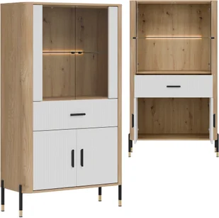 Witryna niska z szufladą Szafka przeszklona Dąb Biały Czarny DANTE DT12