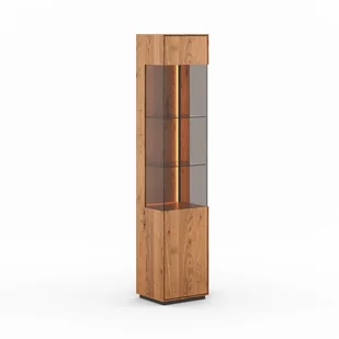 Lewostronna witryna dębowa Collodi Prezentowana witryna lewostronna dębowa Collodi, to wyraz naszej pasji do doskonałości w rzemiośle meblarskim. Ten wyjątkowy mebel został stworzony z najszlachetniejszego dębu, którego słoje i sęki są pieczęcią autentyczności i dowodem na wykorzystanie tylko najwyższej jakości materiałów do produkcji. Model ten idealnie wpisuje się we wszystkie wnętrza, z uwagi na dostojny, ponadczasowy i minimalistyczny wygląd. Dębowa witryna – bo liczy się dbałość o najdrobniejsze detale Witryna dębowa z kolekcji Collodi nie jest jedynie kolejnym meblem – to dowód naszej dbałości o każdy, nawet najmniejszy detal. Olejowanie drewna, choć pracochłonne, pozwala nie tylko na podkreślenie głębi koloru i struktury, ale również na skuteczne zabezpieczenie jego powierzchni przed uszkodzeniem.