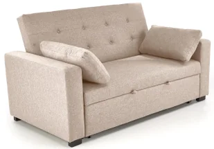 Idealne połączenie stylu i funkcjonalności intuicyjny mechanizm rozkładania pozwala na łatwe i szybkie przekształcenie sofy w wygodne miejsce do spania stylowe pikowane oparcie dodaje elegancji i zapewnia wyjątkowy komfort podczas relaksu przy lekturze lub TV. dwie dekoracyjne poduszki zwiększają wygodę i zachęcają do odpoczynku, wprowadzając przytulny akcent wygodne, wysokie podłokietniki wspierają komfort, a stabilne nóżki gwarantują solidność i trwałość Wysokiej jakości materiały: Tapicerka: trwała tkanina o subtelnym płóciennym splocie, charakteryzuje się wysoką wytrzymałością, łatwością czyszczenia oraz niską podatnością na zabrudzenia. Nogi: tworzywo polipropylenowe o wytrzymałości na nacisk od 70 do 100 MPa i gęstości około 900–910 kg/m³, zapewniające wyjątkową trwałość i stabilność. 2 modne kolory: