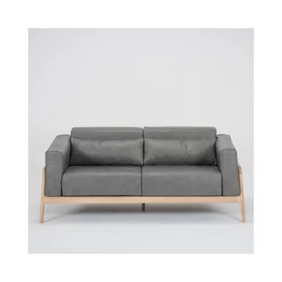 Ciemnoszara sofa z bawolej skóry z konstrukcją z litego drewna dębowego Gazzda Fawn, 180 cm
