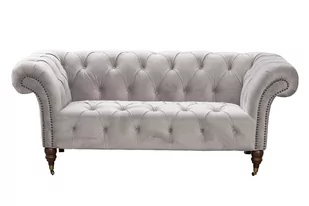 Stylowa, dwuosobowa sofa Chesterfield w stylu glamour na ruchomych nóżkach. Obicie wykonane z aksamitnego, gładkiego materiału, który jest przyjemny w dotyku. Całość złagodzona zaokrąglonymi podłokietnikami z efektownym pikowaniem. Charakterystyczne głębokie pikowanie tapicerki oraz ozdobne ćwieki podkreślają opływowy kształt mebla. Delikatne, ruchome nóżki nadają kobiecy charakter sofy, a pikowane oparcie zaprasza do wypoczynku.