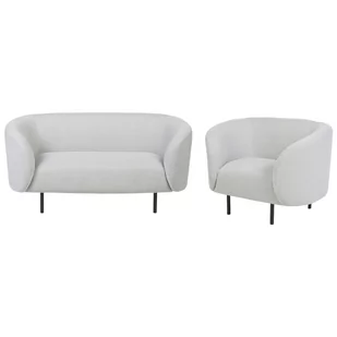 Tapicerowany zestaw mebli do salonu. Ten piękny komplet wypoczynkowy emanuje luksusem, od czarnych nóg po łagodne krzywizny tapicerowanej konstrukcji. Pokryty teksturowaną tkaniną poliestrową, wygląda i jest przyjemnie miękki i wygodny, czyniąc przestrzeń przytulną. Grubo wyściełane siedziska zapewniają wygodne siedzenie, dzięki czemu zestaw jest idealnym miejscem do czytania lub oglądania telewizji do późna w nocy. Elegancki design sof i fotela doskonale uzupełni wnętrza w stylu eklektycznym, tradycyjnym czy mid-century.