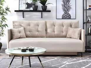 Pikowana Kanapa Z Weluru Molly Beżowa Rozkładana Do Pokoju Dziennego