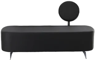Czarna dwuosobowa sofa o nowoczesnym wyglądzie, wykonana z wysokiej jakości materiałów. Obicie z ekologicznej skóry zapewnia trwałość i łatwość w utrzymaniu czystości. Nietypowe oparcie z prostokątnym i okrągłym elementem dodaje sofie oryginalności. Wytrzymałe nogi gwarantują stabilność i wytrzymałość.